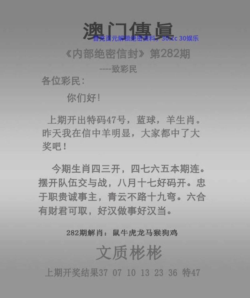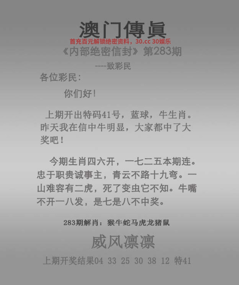 282期:绝杀二肖【鼠狗】开:牛41中 |